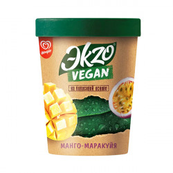 Десерт заморож. на кокос. основе с пюре, соком и кусоч. фрукт. Экзо Веган манго-маракуйя Инмарко 270г ведро