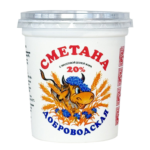 Без ЗМЖ Сметана Доброводская 20% 400г пл/у